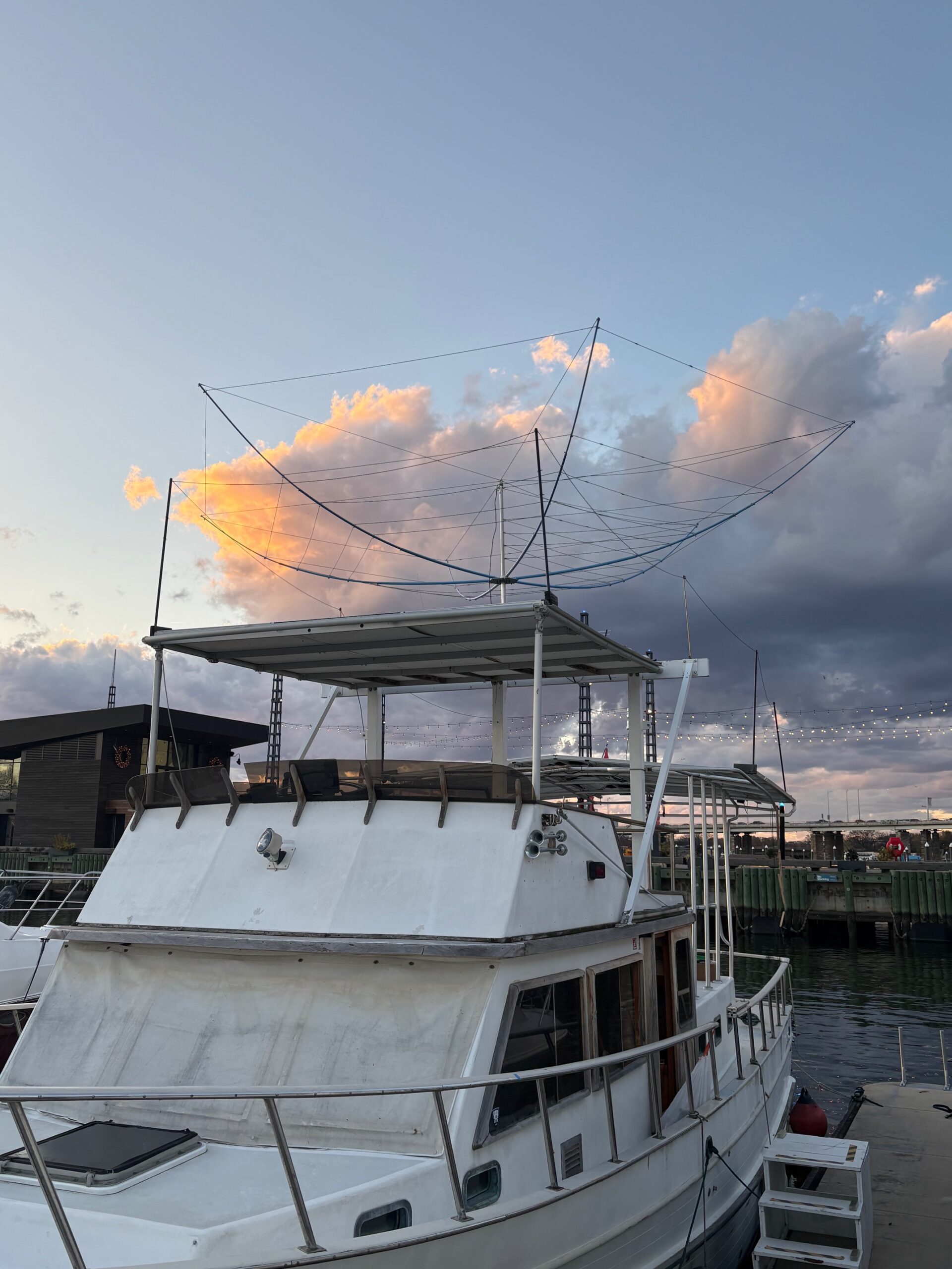 W5EIM mounts his KIO hexbeam on his boat docked in Washington D.C.