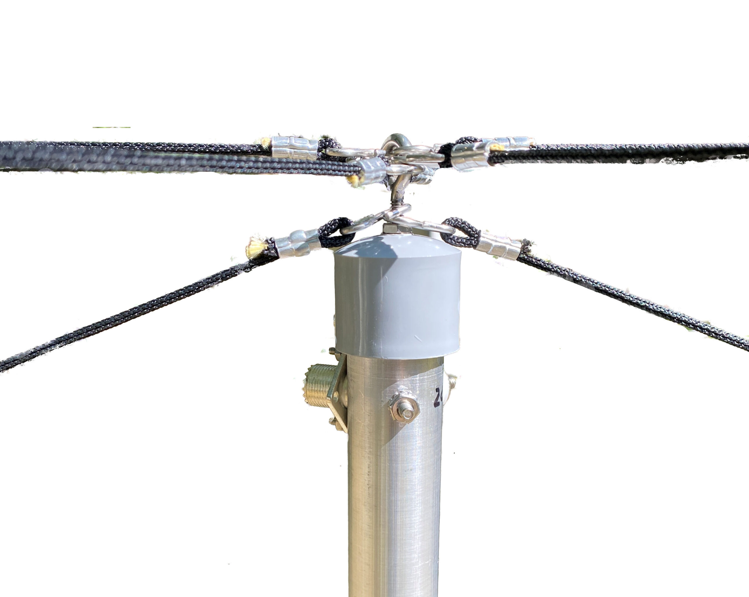 Six Kevlar, no stretch cords with Dacron covering and hardware attachments provide vertical support of your hexbeam arms for the weight of ice and snow. (see details)
